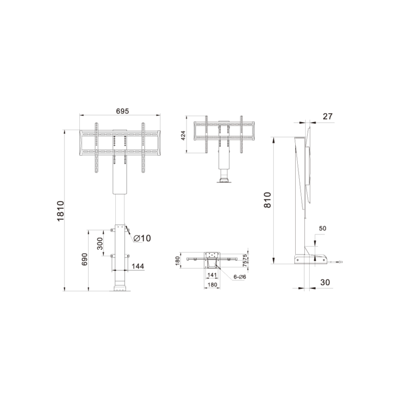 The Motorized TV Wall Mount (TF-8940B) is designed for large televisions, offering a sleek and functional solution for wall mounting. With a motorized mechanism, it allows easy height adjustment, ensuring optimal viewing angles for any TV between 37-100 inches. Its durable construction supports up to 150 kg, making it suitable for even the heaviest screens. The product is VESA compliant, supporting mounting holes up to 800×600 mm, and includes all necessary hardware for a quick and simple installation.