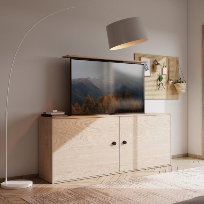 Motorized Adjustment: Effortlessly adjust the height of your TV for optimal viewing comfort.
