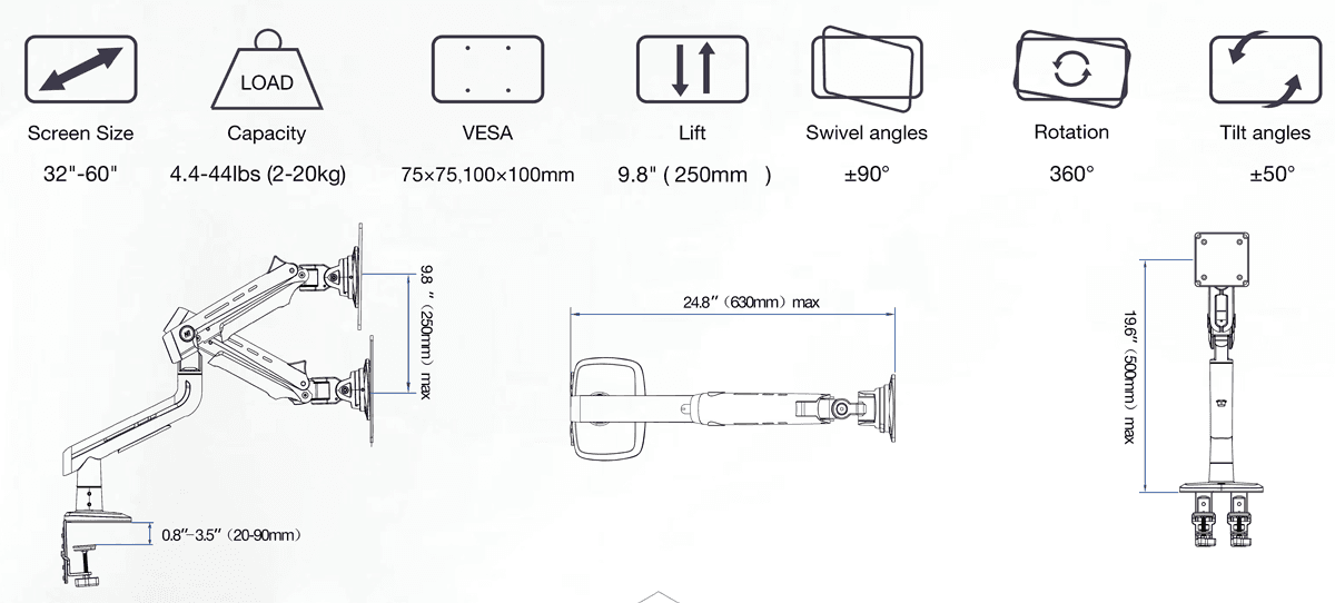 Sturdy Build Quality: Constructed with premium materials, the G80 ensures durability and stability, securely supporting monitors of various sizes and weights.
