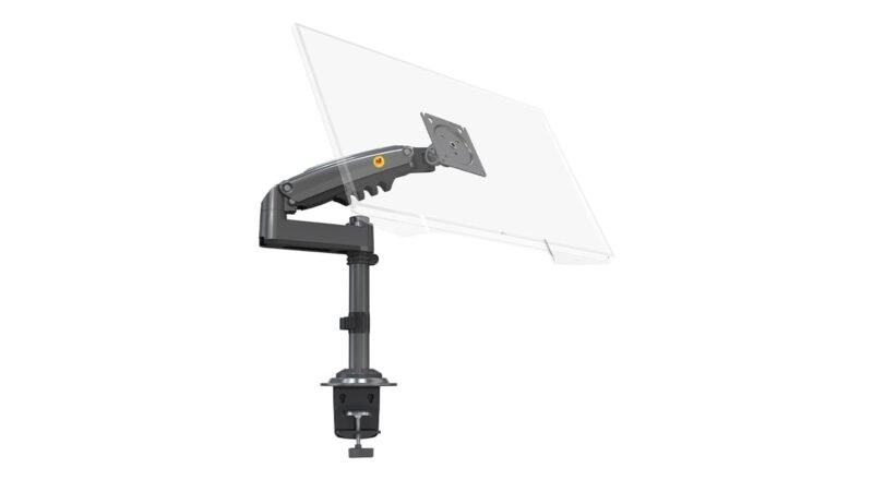 This single-arm monitor mount provides an ergonomic solution for users looking to maximize desk space and enhance viewing flexibility. Suitable for monitors ranging from 17″ to 30″, it supports a wide range of movements, including 360° rotation, tilt, and swivel capabilities. The durable construction allows it to support monitors weighing up to 19.8 lbs (9 kg), while its compact design makes it ideal for smaller workspaces. This mount ensures optimal comfort with easy height and angle adjustments, creating a more productive and comfortable working environment.