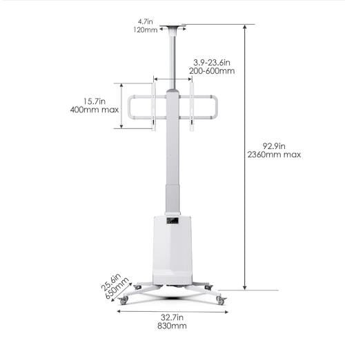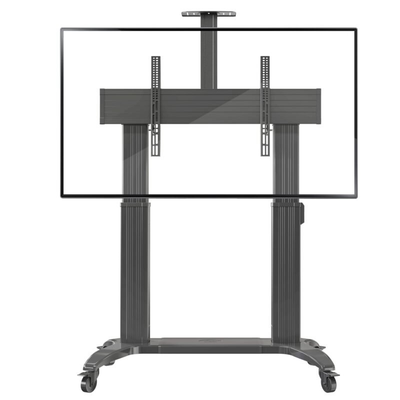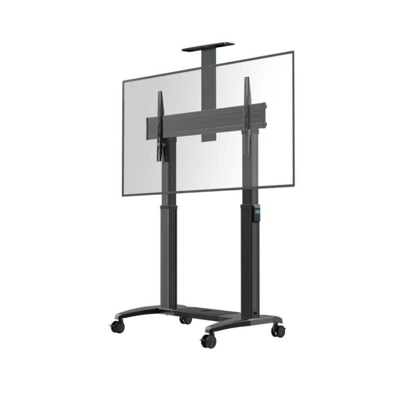 This unique nice looking motorized mobile display cart NB-TW85 is designed to provide moveable large screen solutions to ease your mobility of entertainment, lectures, meeting, conference and exhibitions. Fits most 55″-85″ LCD or LED flat panel TVs. NB-TW85 is piece of innovative mobile display designed include a high tensile solid steel base, and a dual heavy-duty anodized aluminum alloy columns to withstand an overall 150 lbs (68.2 kg) load.