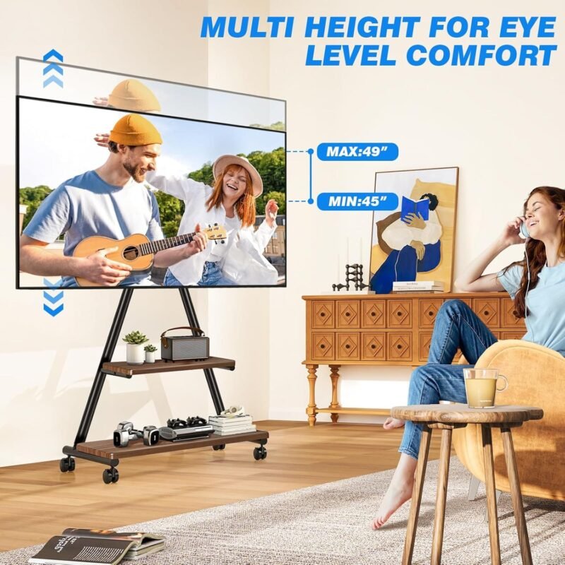Heavy-Duty Construction: Crafted from heavy-gauge steel with solid welds, the stand boasts a wide base and sturdy columns, supporting TVs up to 200 lbs (90 kg).