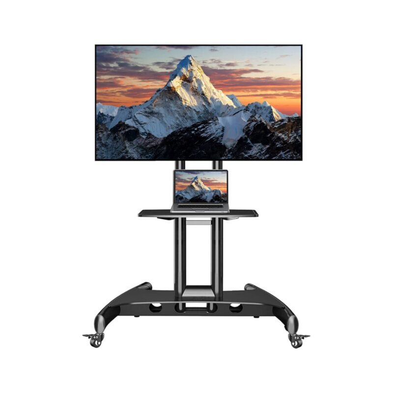Introducing the Mobile TV Cart MT5003—a versatile and robust solution for displaying large-screen televisions in various settings. Designed to accommodate 50″ to 92″ LCD, LED, and OLED at or curved screen TVs, this mobile cart offers both mobility and stability, making it ideal for offices, schools, airports, shopping malls, conference rooms, trade shows, hotels, and more.