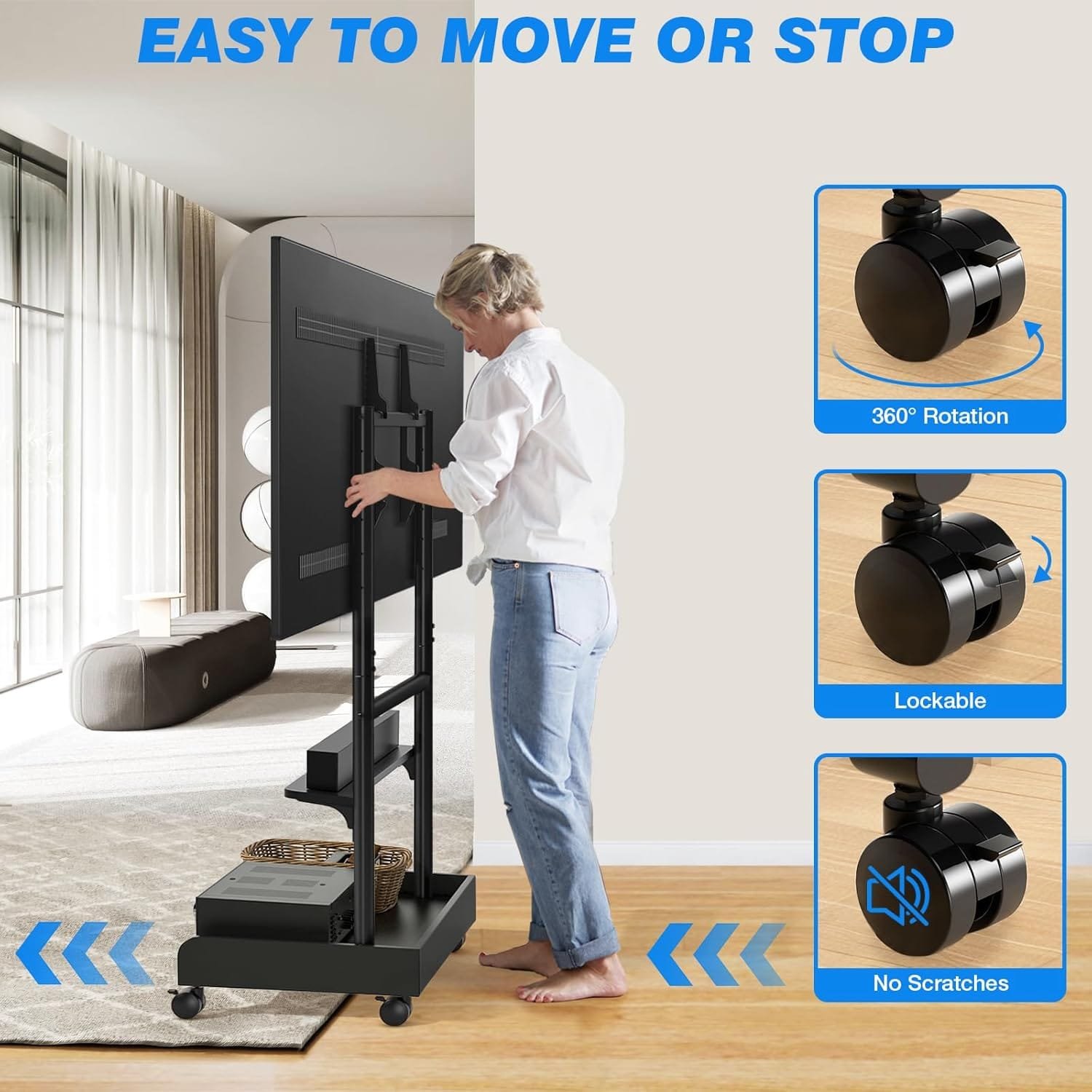 Smooth Mobility: Equipped with upgraded 360° swivel casters that roll smoothly and can be locked in place to prevent unwanted movement, ensuring stability during use.
