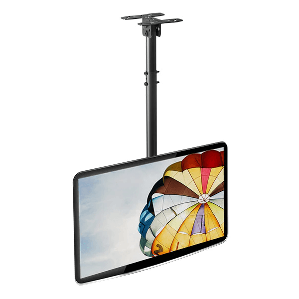 flat and sloping ceiling application. It allows displays to tilt down and swivel around the pole without tools. Includes VESA plate to accommodate virtually any 32’’ – 80’’ LCD TV or monitor up to 68kg/150lbs. Features adjustable height for perfect TV positioning and a wire management channel to keep cables concealed and organized.