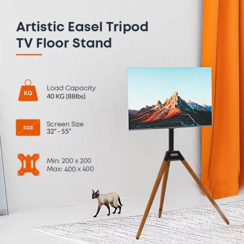 Elevate your viewing experience with the BEETEC Artistic Easel Tripod TV Floor Stand, a stylish and functional addition to any living space. Designed to accommodate TVs ranging from 32″ to 55″, this stand combines elegance with practicality, offering a unique blend of art and technology.