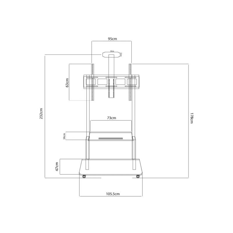 The TF-FS1800W is a robust TV stand designed for large TVs weighing up to 150kg/330lbs. It features an adjustable wall plate for optimal viewing height and includes a shelf capable of holding up to 20kg/44lbs of AV equipment. The stand is equipped with four locking casters for easy mobility and stability. Despite its heavy-duty capabilities, it comes at a competitive price point, making it an attractive choice for those seeking a reliable and versatile TV stand.