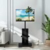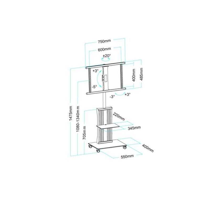 The Easel Studio TV Cart is a versatile and stylish mobile TV stand designed to accommodate a range of television sizes from 32” to 75”. Constructed from durable steel, plastic, and MDF, this TV cart offers height adjustability, swivel, and tilt functions, providing optimal viewing angles. It features a sleek design with an integrated DVD/AV tray, making it a practical solution for both home and office settings. The cart is equipped with smooth-rolling casters for easy mobility, ensuring that your TV can be moved and positioned effortlessly.