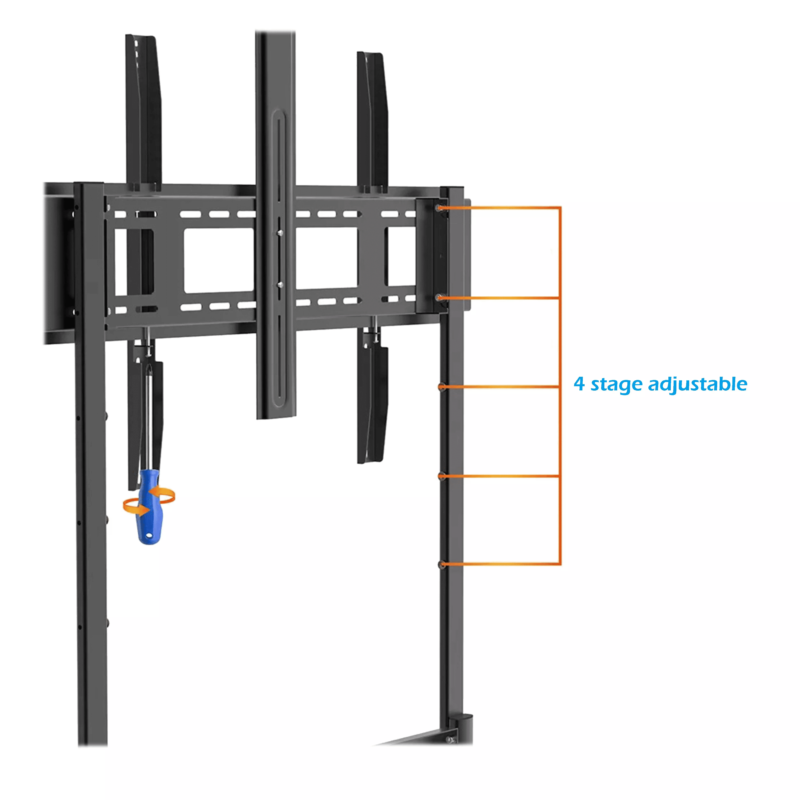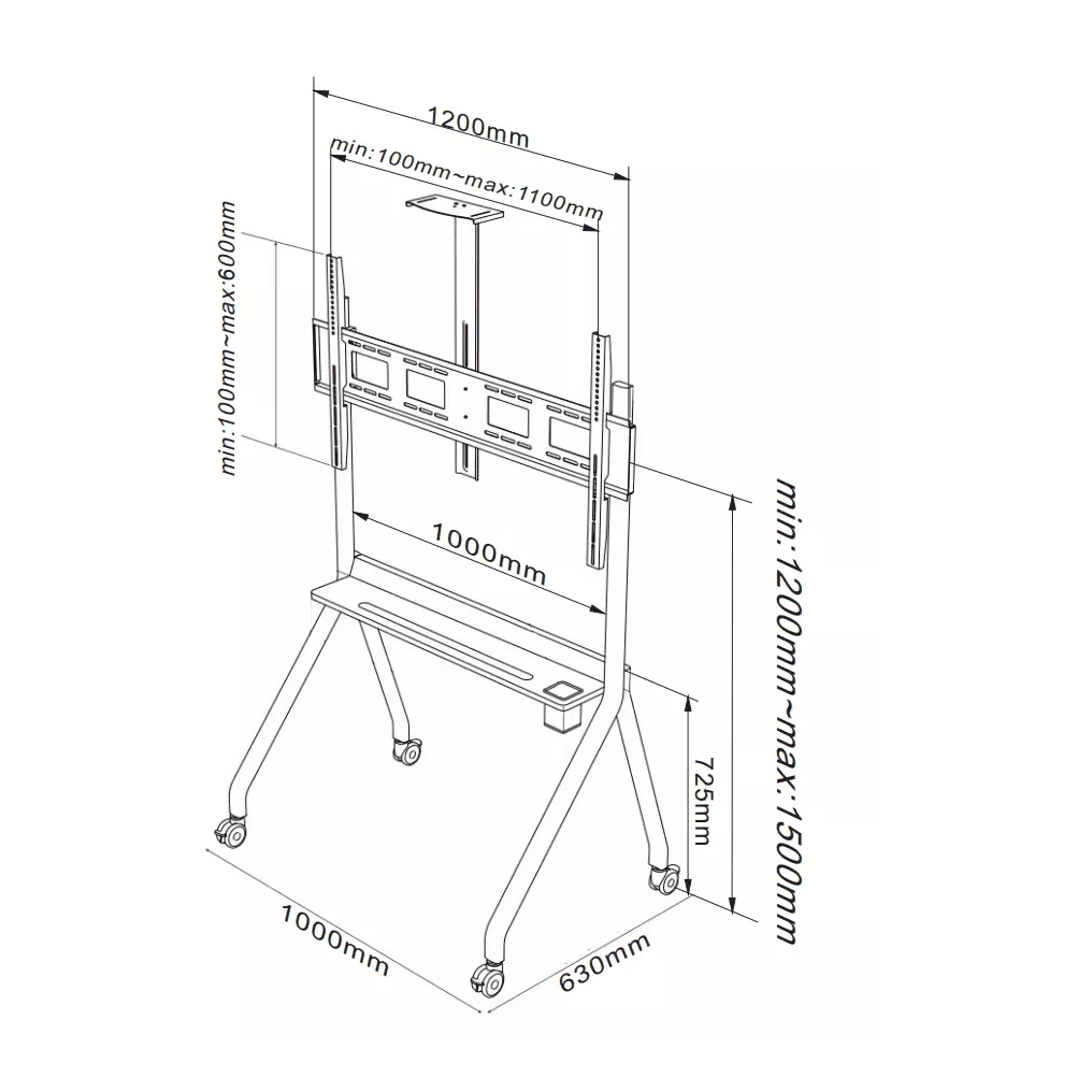 The TF-RG12B is a rolling floor stand cart that is easy for interactive white board installation and move from different rooms. It fits to most 55″-120″ TVs, its max loading weight is 180kgs/400lbs, is an ideal TV mount for office, mall, exhibition, conferences. The max VESA can reach 11000x600mm.
