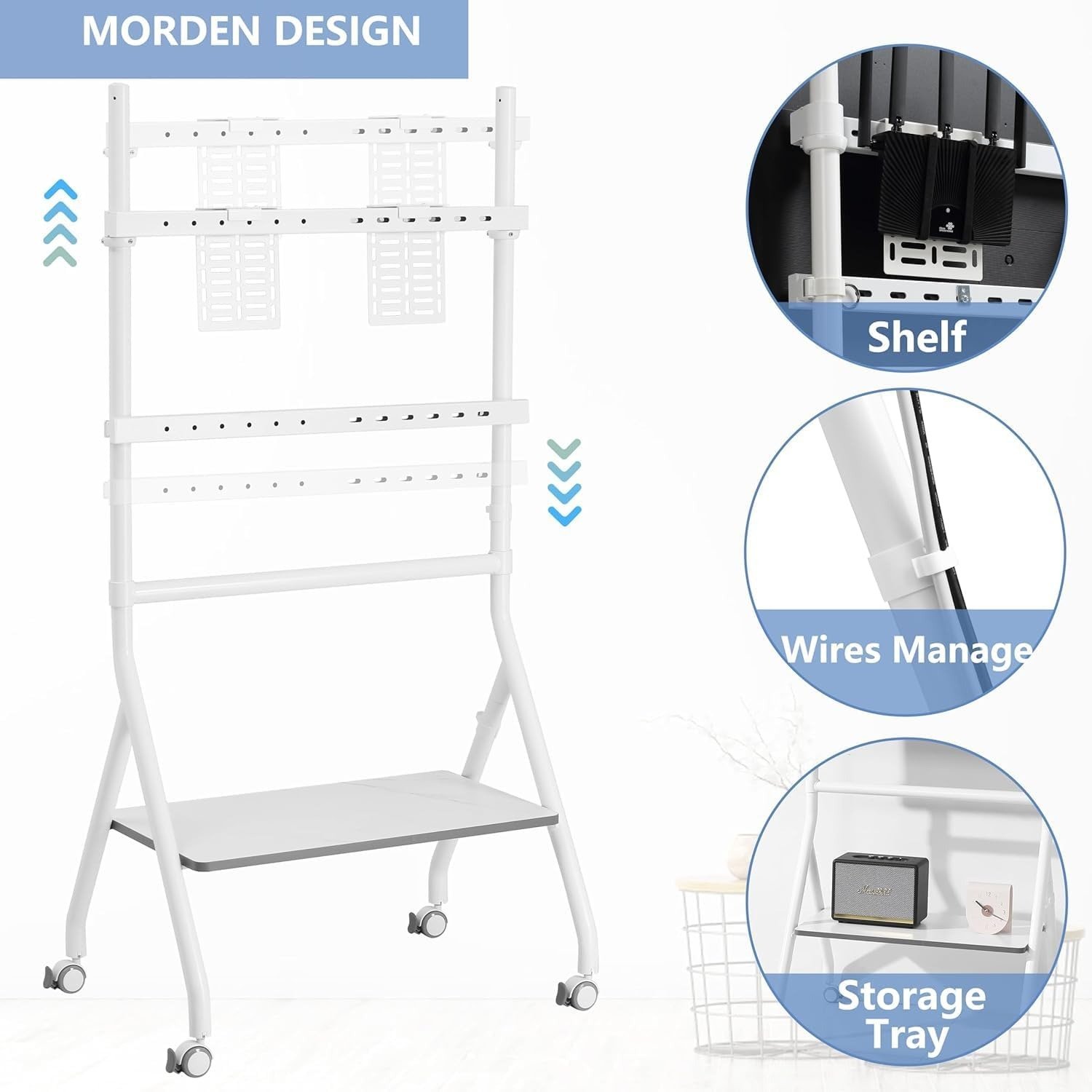 Upgrade your workspace or entertainment setup with this versatile and durable Mobile TV/Monitor Stand. Designed with a sleek black finish and sturdy steel frame, this stand is ideal for offices, classrooms, conference rooms, or home use. With adjustable height and integrated shelf space, it provides both functionality and modern aesthetics. Equipped with smooth-rolling caster wheels, it ensures easy mobility and stable placement wherever you need it.