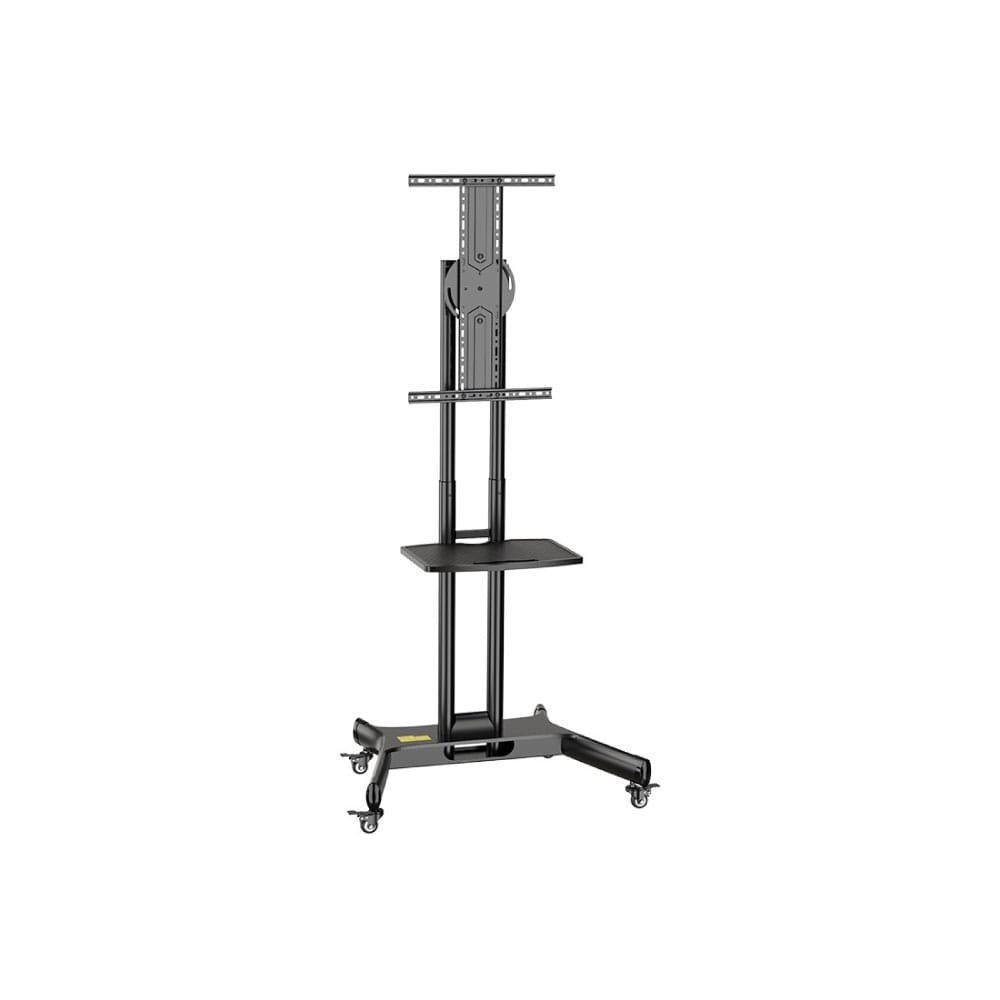 The TF-L65-X is designed to support the meeting in the new technology age, where the interactive displays are used to convey the ideas. The rotational interface allows users to rotate the display 90° from portrait to landscape easily. The equipment shelf behind provides storage space for materials or equipment. From room to room, the KLC-L65-X is safe and easy to move with rounded edged legs and four PU hooded lockable wheels.